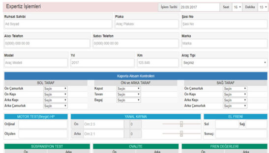 Araç ekspertiz yazılımı ekspertiz firmlarını ekspertiz raporunu istediği şekilde çıkarta bilmesi için hazırlanmıştır