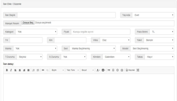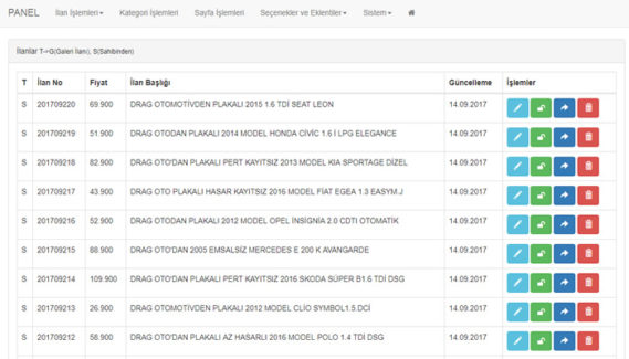Hasarlı Araçlar ve ikinci el otolar için hazırlanmış olup sınırsız şekilde elinizdeki bütün araçları yükleyip yayınlaya bilirsiniz ÇEK butonu ile sahibinden.com da yüklü olan oto larınızı bir kaç dakika içerisinde kendi adınıza yapılmış sitenizde yayınlaya alabilirsiniz